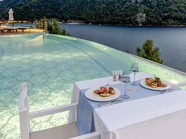 Muhteşem koy ve orman manzarası ile Hünkâr Türk Mutfağı, tüm öğünlerinizde sizlerle. Uluslararası tecrübeye sahip seçkin şeflerin özenle hazırladığı menüler; günlük taze olarak edinilen sebzeler, meyveler, taze hayvansal gıdalar, yetişme bölgesinden doğrudan temin edilen baharatlar ile buluşuyor. Farklı coğrafyaların lezzetlerini, seçkin bir açık büfe restaurant ayrıcalığı ile sunan Hünkâr Türk Mutfağında; sağlık, diyet ve çocuk büfeleri bir arada. Hünkâr Restaurant, yeni menüleri, yenilenen sunumları ve mimari değişiklikleri ile 2021 yazında misafirlerini ağırlamaya devam ediyor.
